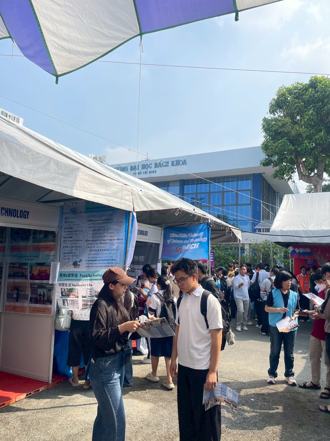 Gần đây, trường chúng tôi được mời tham gia ngày hội tư vấn tuyển sinh hướng nghiệp 2026 được tổ chức tại Đại học Bách khoa TP.HCM. Trong hoạt động lần này, Phó Hiệu trưởng của trường cùng các đồng nghiệp thuộc văn phòng hợp tác quốc tế đã đại diện tham dự, giới thiệu đến học sinh và phụ huynh địa phương về đặc điểm đào tạo, môi trường học tập cũng như các cơ hội giao lưu quốc tế đa dạng của nhà trường.